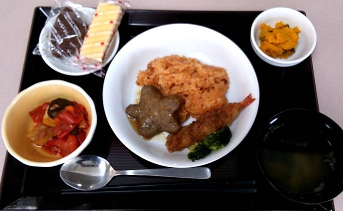 今日は、デザートにケーキをつけたクリスマス特別メニューです。